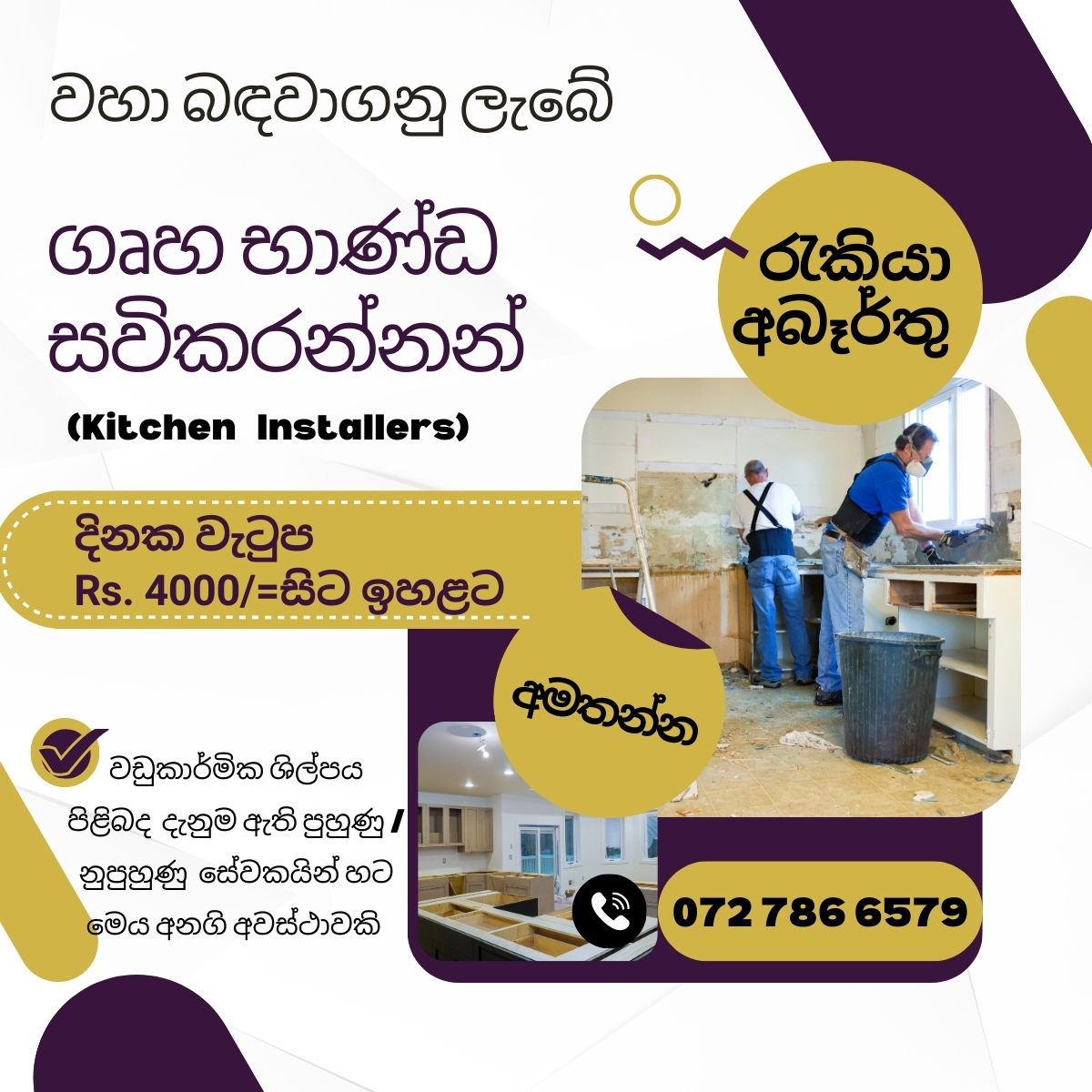 ගෘහභාණ්ඩ සවිකරන්නන් (Kitchen Installers)